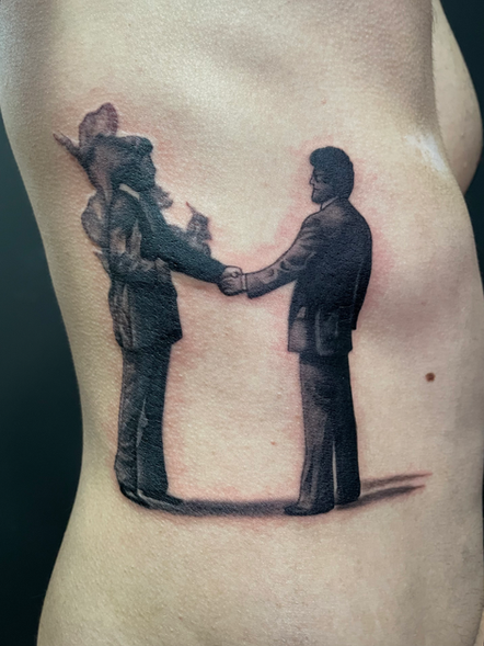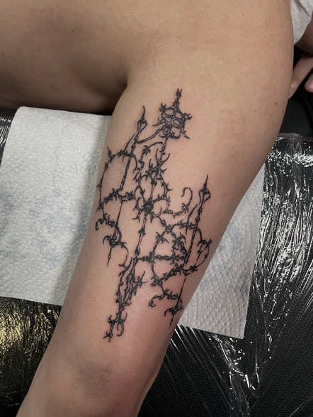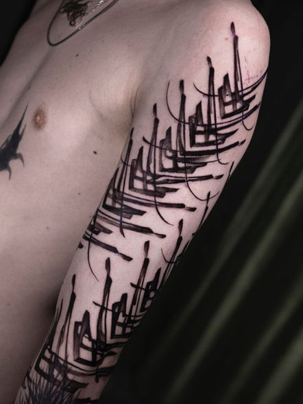 Hailing from the underground scene of Bucharest, Alex117 started tattooing when he was only 17. Self taught artist, he is interested in art styles like abstract, realism, and blackwork, drawing inspiration from music, visual art and mostly life itself. He likes to start with a client's idea for, as he says, "art comes from life experiences and is fueled by emotions, my desire is to untangle the intricate human mind, to get to the core of what made it come up with the tattoo idea. ''I listen to the story and then I let it develop on the skin", and works with his and his client's ideas.